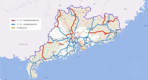 根據(jù)《廣東省綜合交通運(yùn)輸體系“十二五”規(guī)劃》,將加快國家高速公路粵境段、高速公路出省通道和珠江口東西兩岸跨江通道建設(shè),構(gòu)建布局合理、通達(dá)便利和具有較高服務(wù)水平的高速公路網(wǎng)絡(luò)。省委、省政府確立高速公路建設(shè)2大目標(biāo):“十二五”期間,全省將實(shí)現(xiàn)縣縣通高速公路,全省高速公路通車?yán)锍踢_(dá)6500公里。