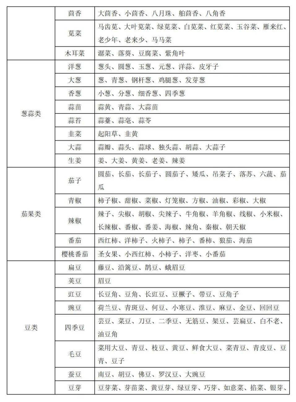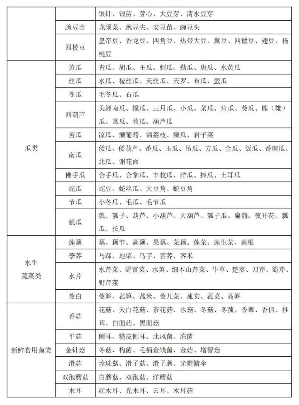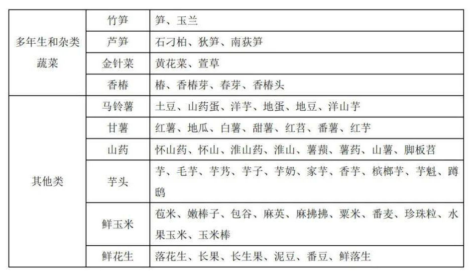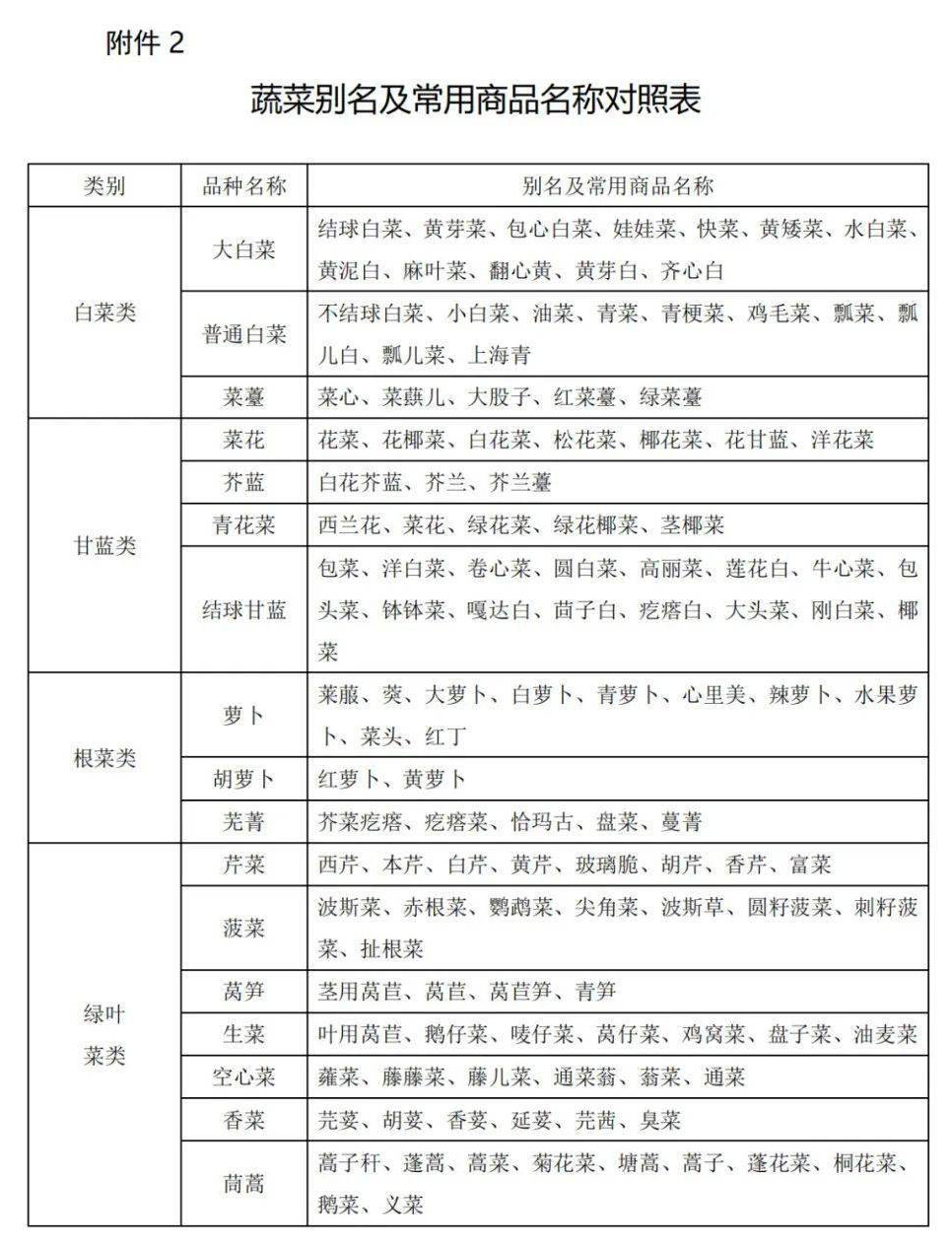 2、蔬菜別名及常用商品名稱對照表