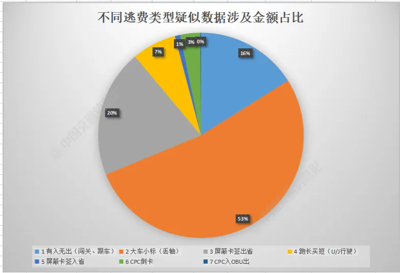 分析可得,有入無出(闖關(guān)、跟車)、大車小標(biāo)(丟軸)、屏蔽卡簽出省和跑長買短(U/J行駛)等4種逃費(fèi)類型分別占據(jù)涉及行程數(shù)的96.87%、疑似損失金額的95.9%,是稽核系統(tǒng)需加大核查力度的逃費(fèi)類型,特別是屏蔽卡簽逃費(fèi)車次占為11%,逃費(fèi)金額占比卻達(dá)25%,以全網(wǎng)聯(lián)網(wǎng)收費(fèi)運(yùn)行模式下出現(xiàn)的新型逃費(fèi)類型,需要從技術(shù)、管理等多方面加強(qiáng)管理。有入無出(闖關(guān)、跟車)和跑長買短(U/J行駛)2類逃費(fèi)類型確認(rèn)逃費(fèi)金額占比有所下降,直接原因是稽核模型準(zhǔn)確率不高。下一步應(yīng)持續(xù)優(yōu)化迭代這2類模型,盡可能提高其準(zhǔn)確率,從而不斷提高可追繳比例。